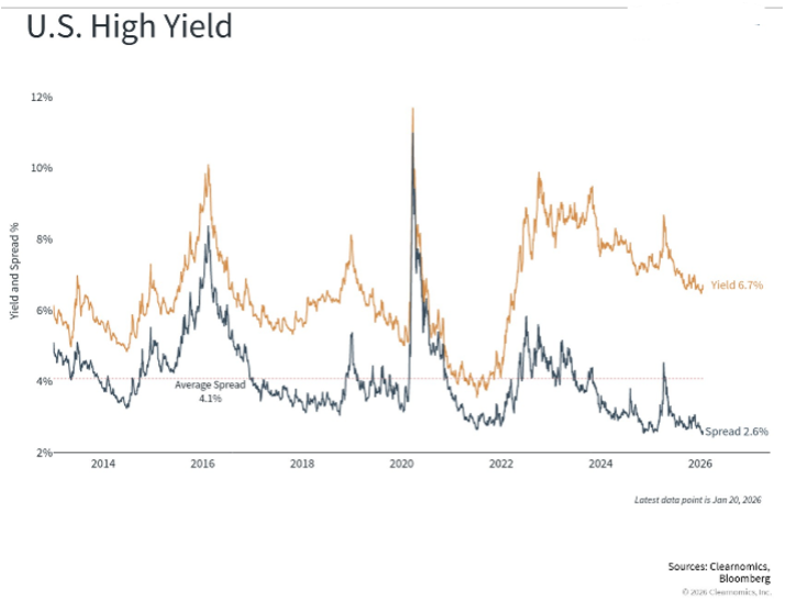 The fixed income environment during 2025 was characterized by compression in corporate spreads vs. Treasuries. The spread compression has been so extreme that high yield bond spreads reached pre-GFC levels of 2.9% and investment grade corporate bond spreads contracted to 20-year lows of just 0.47%. These valuations offer little reward for incremental risk and run counter to our ethos of not owning “return free risk.”